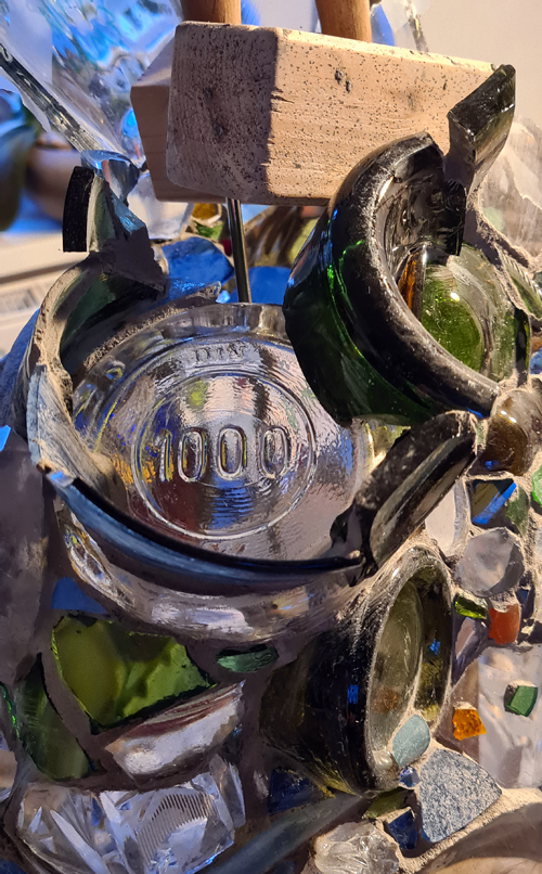 Auch das Private litt darunter, denn jetzt war der Konkurrenzkampf endlich in den Familien angekommen. Derart geprägt, versuche ich seitdem immer wieder sämtlich auftretende, gute wie schlechte Emotionen, die meine Persönlichkeit begleiten, in Kunstwerke zu transformieren, um letztendlich etwas Positives daraus entstehen zu lassen; anfangs noch in Bildern, später dann zunehmend in dreidimensionaler Form. Ich hatte es schon des Öfteren erwähnt: Scherben erweisen sich im letzten Lebens-Drittel als das geeignetste Mittel, mir dabei zu helfen, mich auszudrücken und dabei zugleich meine inneren Dämonen zu besiegen.