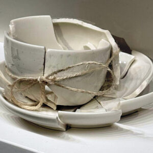 Die beigefügte Klebetasse ist ein Aprilscherz, denn so schön sie auch ist – sie stammt nicht von mir! Auch andere Kollegen – in diesem Falle die betagte Künstlerin Yoko Ono – betätigen sich damit, kaputte Dinge wieder zu reparieren. In der Nationalgalerie in Berlin gab es die Ausstellung dazu, im letzten Jahr zu sehen. Die Künstlerin klebte ihre Scherben aber nur halbherzig, weil zwar unsichtbar – jedoch mit Tesafilm – aneinander, um dann eine Schnur lose darum zu binden, die von Sorgfalt spricht. Die gebundene Schleife sieht zwar nett aus … dennoch bleibt eine kaputte Tasse bei Yoko Ono ein Unfallopfer ohne die Aussicht darauf, gesunden zu dürfen. Ihre Botschaft ist ähnlich der meinen: Bitte mehr Rücksicht.